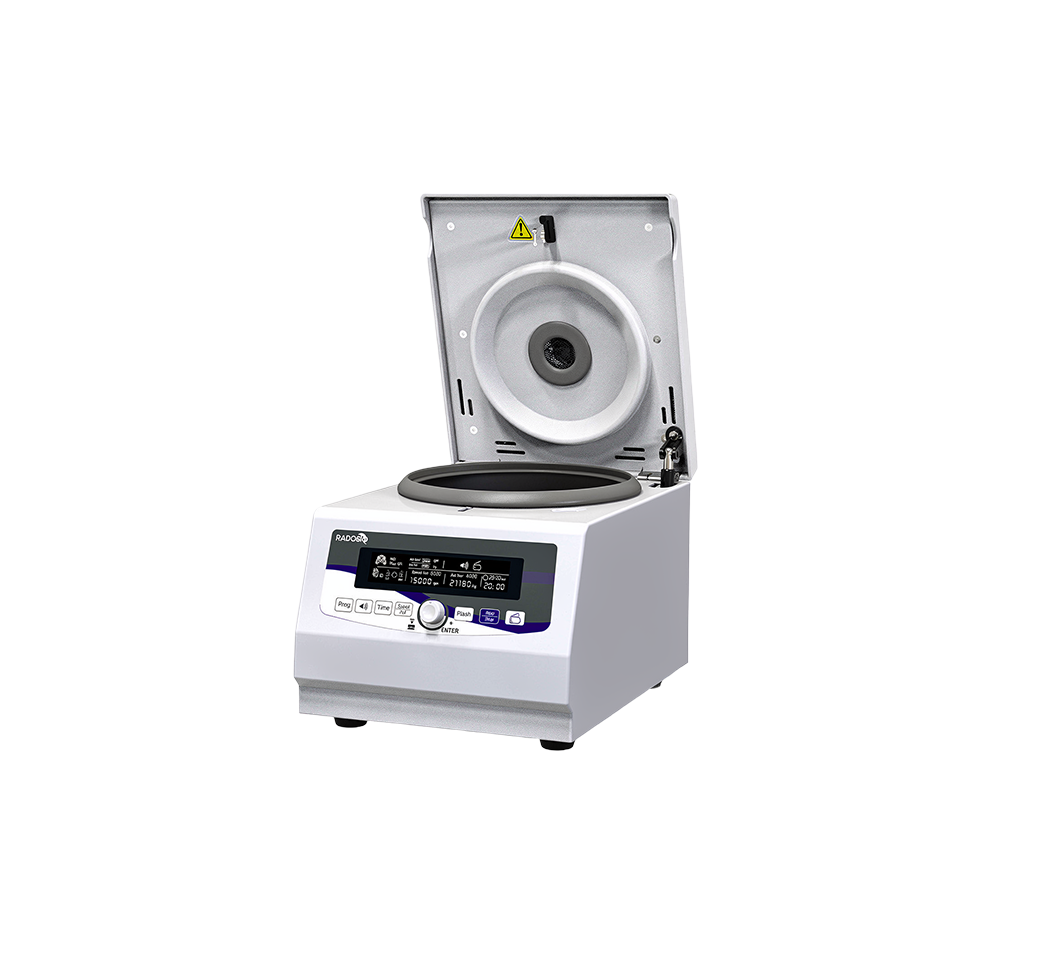Radobiolab offers a range of laboratory centrifuges for applications in academic research and bioprocessing laboratories. Their product line includes mini, benchtop, high-speed, and refrigerated models, often featuring compact designs to maximize lab space: